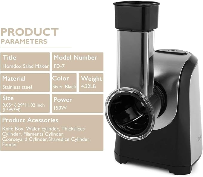 Homdox Electric Cheese Grater 5 in 1 Professional Electric Slicer Shredder 150W Cheese Grater One-Touch Control Salad Maker for Home Kitchen Use, Electric Salad Machine for Cheese, Fruits, Vegetables