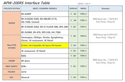 - It is compatible with Clover POS System, Connects with many ECR's and POS systems, RS-232C Interface with Cable Included, ALL MOST SAME AS CAS SW-RS SCALE(ASIN: B00BT2HJIO, B00BT2I8YS), If you need a protocol manual and Converter Cable for Clover, Our cable can't be connected directly to Clover. Our cable is for between APW-200RS scale and Clover "Cable", Just email VisionTechShop(Seller) with your Amazon order number