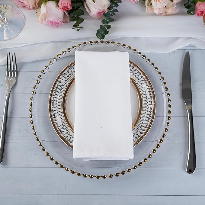 Solid Color Linen Blended Thin Dinner Cloth Napkins - Set of 12 (40 x 40 cm) - for Events & Home Use (White)