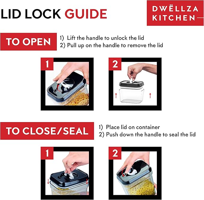 - Enjoy Your Meal With Fresh Food: Keep Your Foods Fresh with Our Very Easy to Use Airtight Lid-Lock Mechanism. No Dealing with Flimsy Pumps. Our Food Storage Containers Create an Airtight Seal by Simply Pushing Down the Ring on The Lid. Lift the Ring and Push Up Whenever You Want to Open the Containers. The Airtight Seal Is So Secure You Can Store Liquids Without Ever Worrying About Leaks!