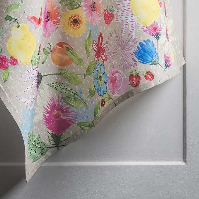 Maison d' Hermine Kitchen Towels Set of 2 100% Cotton 27.50" x 20" Reusable Cloth Tea Dish Towels Absorbent with Hanging Loop for Kitchen, Dining, Cocktail Parties Spring/Summer (Jardin D'Ete - Fog)