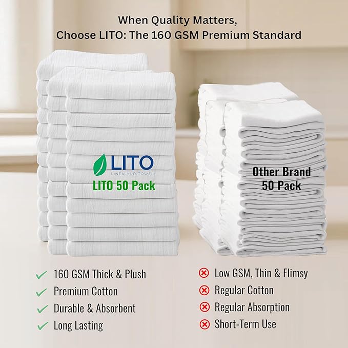 - MULTIPURPOSE: Their lint-free pure ring-spun cotton composition makes them perfect for drying glassware, hands and surfaces. Moreover, they excel at tasks like cheese straining, salad spinning, and even serving as reliable dough covers for baking.