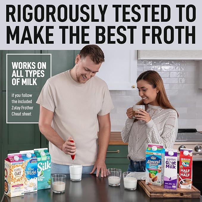 - PROVEN AND TRUSTED QUALITY: We use only premium materials. The construction will last, backed by our Zulay Guarantee to not rust or break, ever. Our small and efficient frother works on all types of milk - half and half, creamer, soy, almond, cashew, hazelnut, whole milk, and other dairy such as butter or cream.