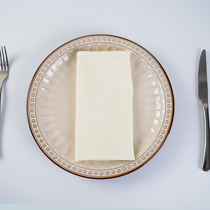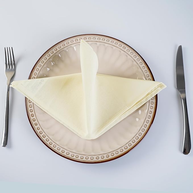 Solid Color Blended Thin Dinner Cloth Napkins - Set of 12 (40 x 40 cm) - for Events & Home Use (Cream)