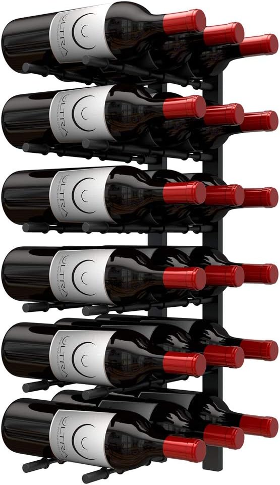 Ultra Wine Racks Wall Mounted Label-Out Wine Racks (2 Foot 3 Deep, Matte Black, 18 Wine Bottles) - Modern Metal Wine Storage, Modular Design for Home Bar, Kitchen, Dining Rooms, & Wine Cellars