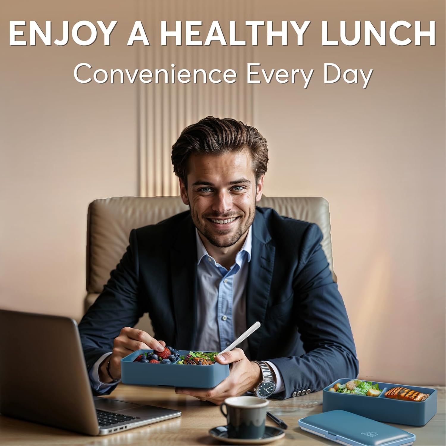 - All-in-One Solution: Discover the bento box adult all-in-one, perfect for busy professionals and frequent travelers. The lunch containers for women/men includes 2 movable dividers, big sauce jar and a complete utensil set.
