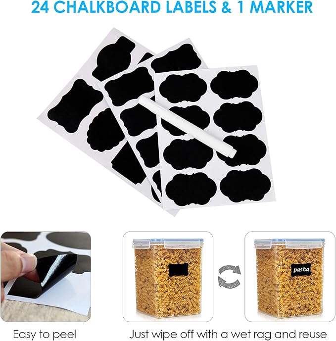 - Make a Huge Difference in Pantry Organization ---- If you already got tired of messy flour and sugar bags, then don't hesitate to choose our large food storage containers. These flour containers will make everything looks neat and in order. Come with 4 premium food storage canisters, 4 measuring cups, 24 chalkboard Labels, this container set will also be an ideal gift for any family.