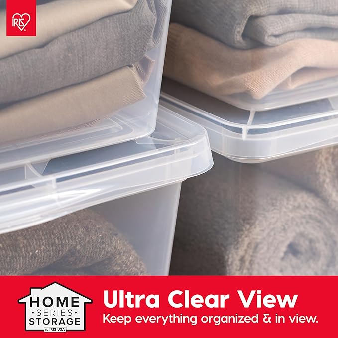 IRIS USA 12-Pack Storage Bins with Lids, 17 Quart, Shoe Boxes Clear Stackable Containers Organize Shoes Closet Shelves, Classroom Organization Teacher Tools, Game Storage - BPA-Free Plastic