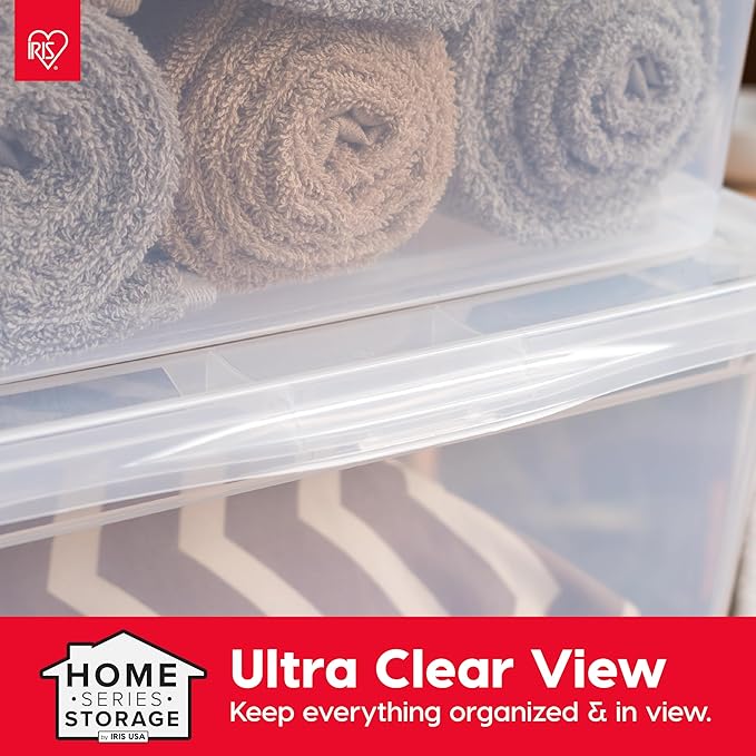 IRIS USA 6-Pack Storage Bins with Lids, 58 Quart, Clear Stackable Containers Box Organize Shoes Closet Shelves Clothes Blankets Towels - BPA-Free Plastic