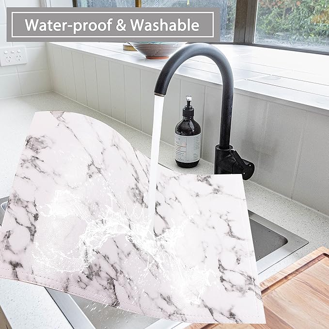 Marble Faux Leather PU Placemats, Set of 4, Washable, Stain Resistant for Dining Room Kitchen Table Decor