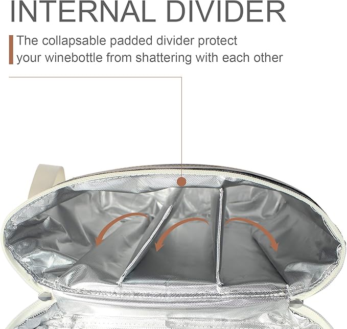 - Protection & thermal insulated - features maxcold insulation to keep your wines cool. super-thick insulation padded lining keeps interior cooler, longer, and protects bottles. whether you are headed to the beach, the park or out for the day tailgating, this wine tote is the perfect way to transport and cool your wine.