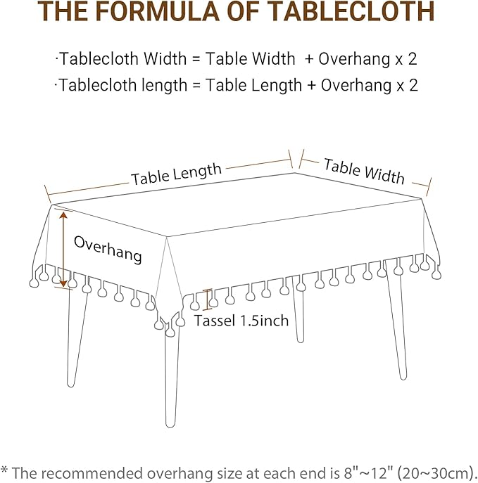 - 【ANTI-WRINKLE & ANTI-SHRINK】: This table cloth is made of high quality eco-friendly heavy Polyester linen, making it soft and smooth, with exquisite tassels to make your table more beautiful