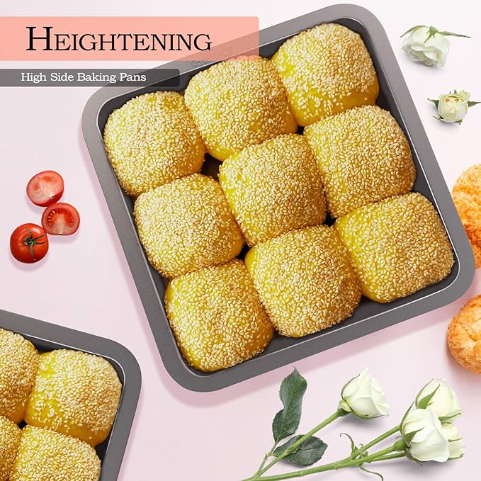 CHEFMADE Square Cake Pan, 8-Inch Bakeware Non-Stick Carbon Steel Pan Deep Dish Oven Baking Mold Baking Tray Ovenware for Cakes, Bread, Pizza, Cookies