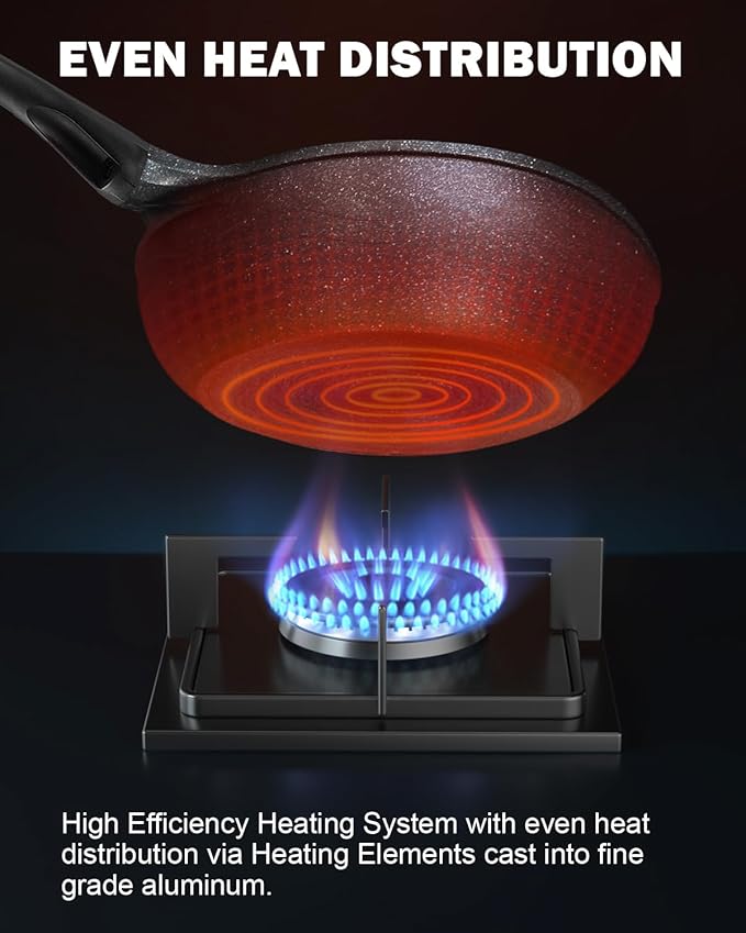 - Nonstick marble coating makes food release/cleaning easy and allows for healthy cooking