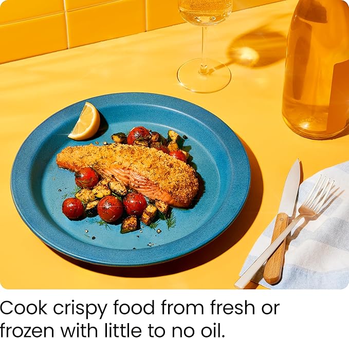 - HEALTHIER FRYING: This air fryer makes ‘healthy fried foods’ a reality. Temperature ranges from 200-400 F allows you to cook at your desired temperature, achieving a healthy, crispy, fried finish using at least 98 percent less oil than traditional fryers. Air fry vegetables, pizza, frozen foods and leftovers – this air fryer evenly crisps every inch of your food.