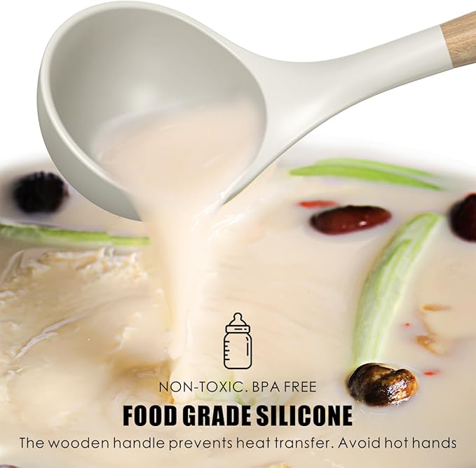 - IDEAL GIFT FOR COOKS – This silicone kitchen utensils set is stylish and practical, fitting various kitchen styles. Perfect for weddings, housewarmings or birthdays as a thoughtful gift. The wooden handle’s shape and temperature ensure comfortable grip, with sleek silicone design blending utility and decor, bringing joy to cooking enthusiasts