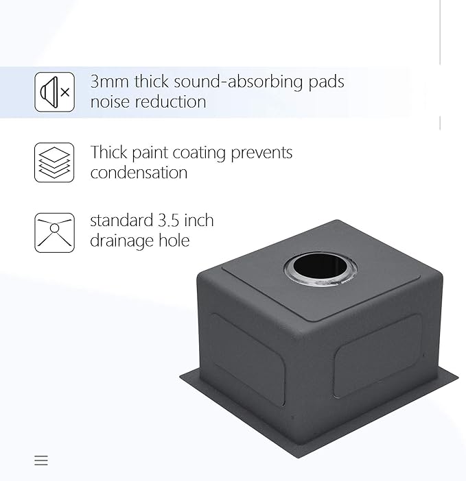 - ❤DRAIN FAST&SOUND DAMPENING -- our undermount single bowl sink has X-shaped diversion waterlines and a gently sloped bottom that prevents standing water inside the bowl fast drainage, no blockage. Thickest sound-proof pads have been added to absorb running water sound. Full and thick outer body coating is paited to prevent moisture accumulation, well protect your cabinet.
