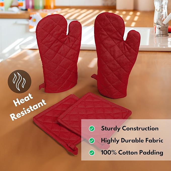 - 4-PIECE SET: Includes 2 oven mitts and 2 potholders, perfect for all your kitchen needs.