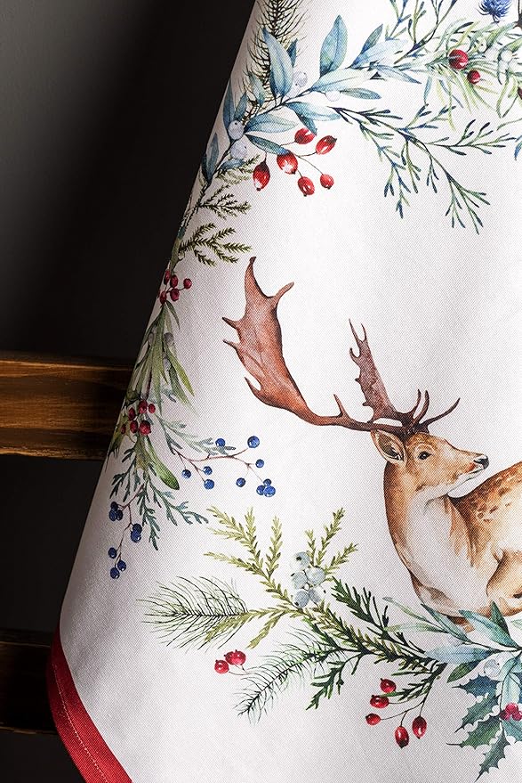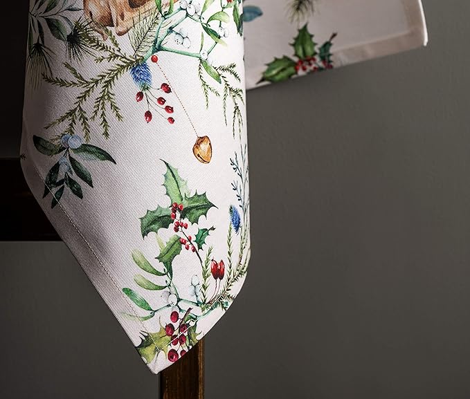 Maison d' Hermine Kitchen Towels Set of 3 100% Cotton 20" x 27.5" Reusable Cloth Tea Dish Towels Absorbent with Hanging Loop for Kitchen Dining Thanksgiving Christmas Decorations (Holly Time)