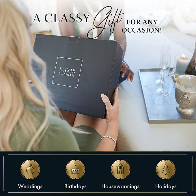 - The Ultimate Gift Idea: Sophisticated, stunning, and luxurious—these glasses make a memorable gift for any occasion. Whether for a spouse, parent, or friend. Perfect for weddings, anniversaries, and celebrations.