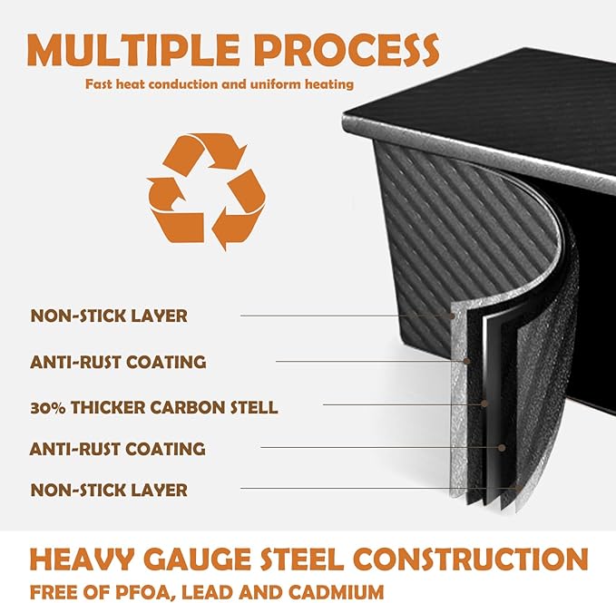 - This Loaf Pan toast mold is treated with a special non stick coating, which does not absorb grease and water and is easy to clean.