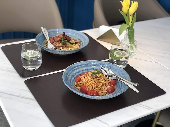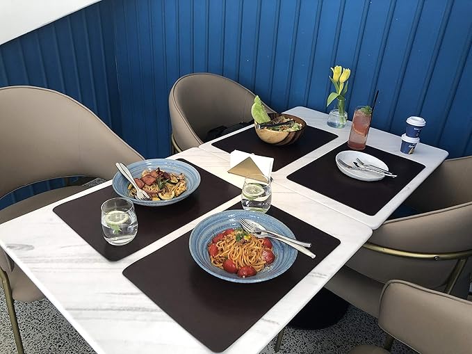 Faux Leather Placemats, Set of 4 PU Table Mats, Easy to Clean, Heat & Stain Resistant for Office Conference Table,Dinging Home Decor F Dark Brown