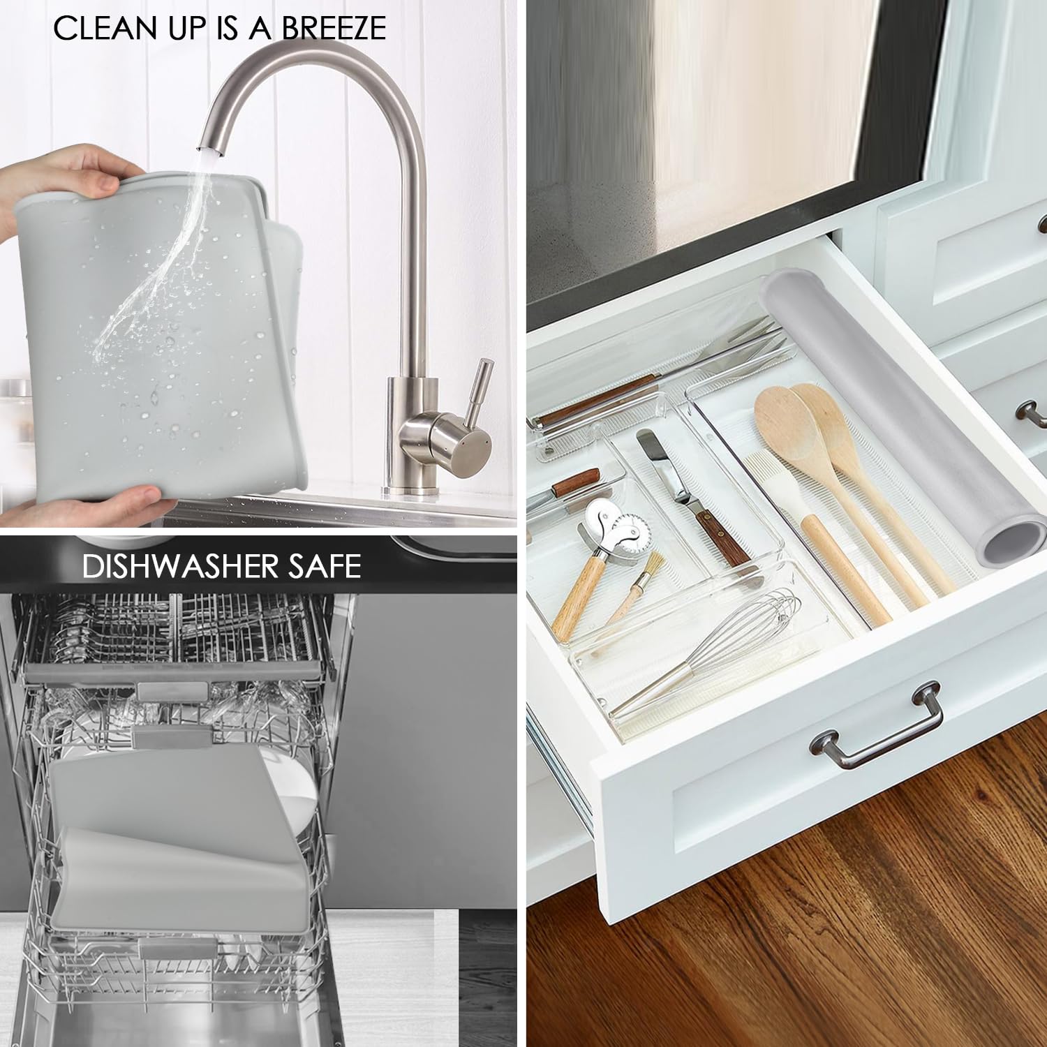 Silicone Placemats with Raised Edges for Kids, Kids Placemat for Dining Table, Silicone Table Mat Portable Reusable Non-Slip Mats for Kids Toddler Children (Grey)
