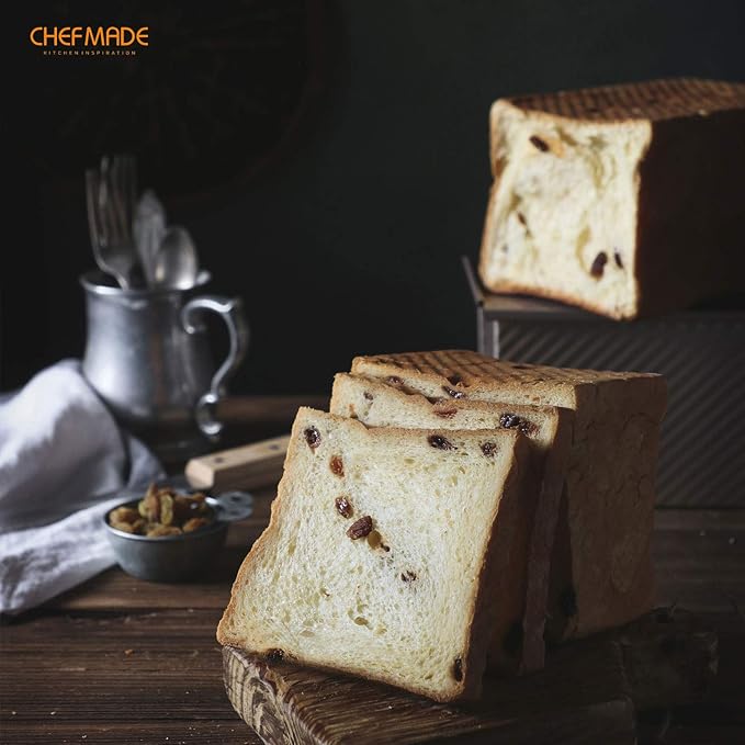 CHEFMADE Commercial Pullman Loaf Pan with Lid, 2.2Lb Dough Capacity Non-Stick Rectangle Corrugated Carbon Steel Bread Toast Mold with Cover for Baking Bread (Champagne Gold)