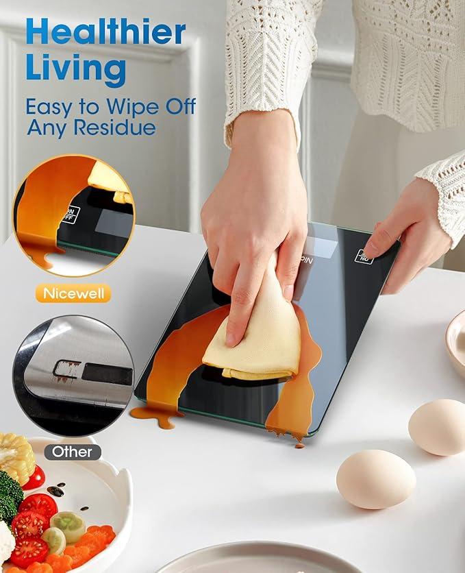 Nicewell Food Scale Digital Weight Grams and oz, 22lb Kitchen Scale for Cooking Baking, 1g/0.1oz Precise Graduation, Sleek Tempered Glass Platform (Black)