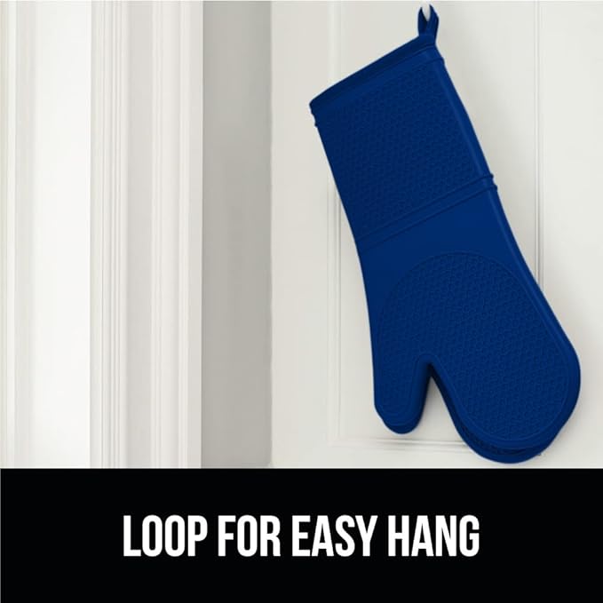 GORILLA GRIP BPA-Free Soft Silicone Oven Mitts, Heat Resistant and Waterproof Cooking Gloves, Thick Cotton Lining, Flexible Gripping for Baking Grilling, Kitchen Potholders Set of 2, 12.5x8.3, Blue