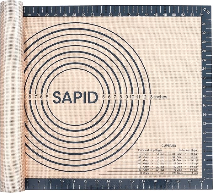 - Double Thickness : Sapid silicone pastry mat(16" x 24") is twice thickness(0.7mm) than the other dough rolling mat (0.3mm) on the market. This thicker pie mat is quite safe for the pastry/cookies cutter, dough scraper. There will be a dough scraper included in the package, which is easy for you to separate each dough.