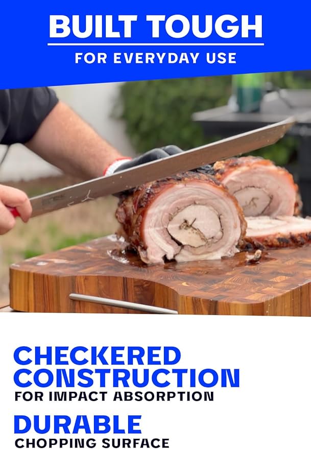 - HANDCRAFTED FOR THE PERFECT CUT - Made from end-grain wood and filled with moisturizing oils, our cutting board is gentle on knives, ensuring precision cuts every time.