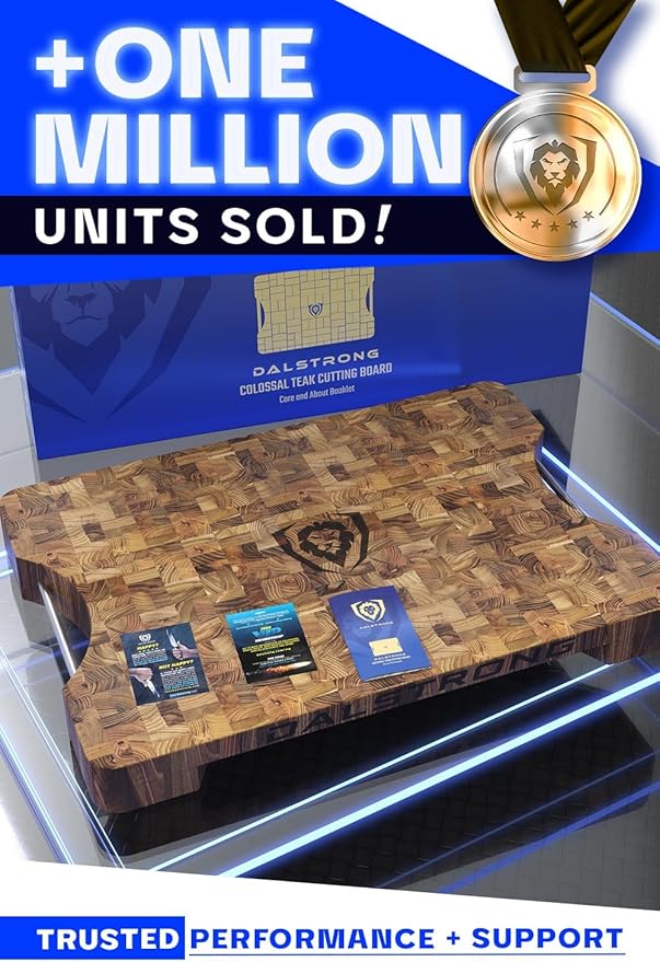 Dalstrong Massive XL Cutting Board - Lionswood End-Grain Teak - 25" x 18"-Steel Carrying Handles -Serving Board - Large Cutting Boards For Kitchen- eat Cutting Board-Two Sizes