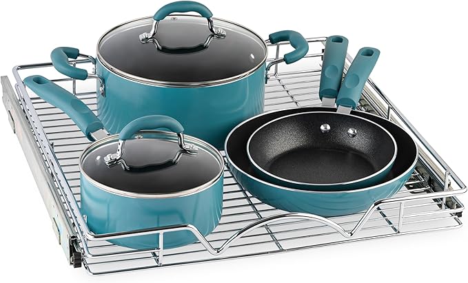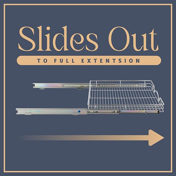 - HIGH QUALITY: Made of durable metal with chrome finish the pull out shelf for kitchen cabinet is simple and easy to install. Designed to fit any style of cabinetry and easy to clean.