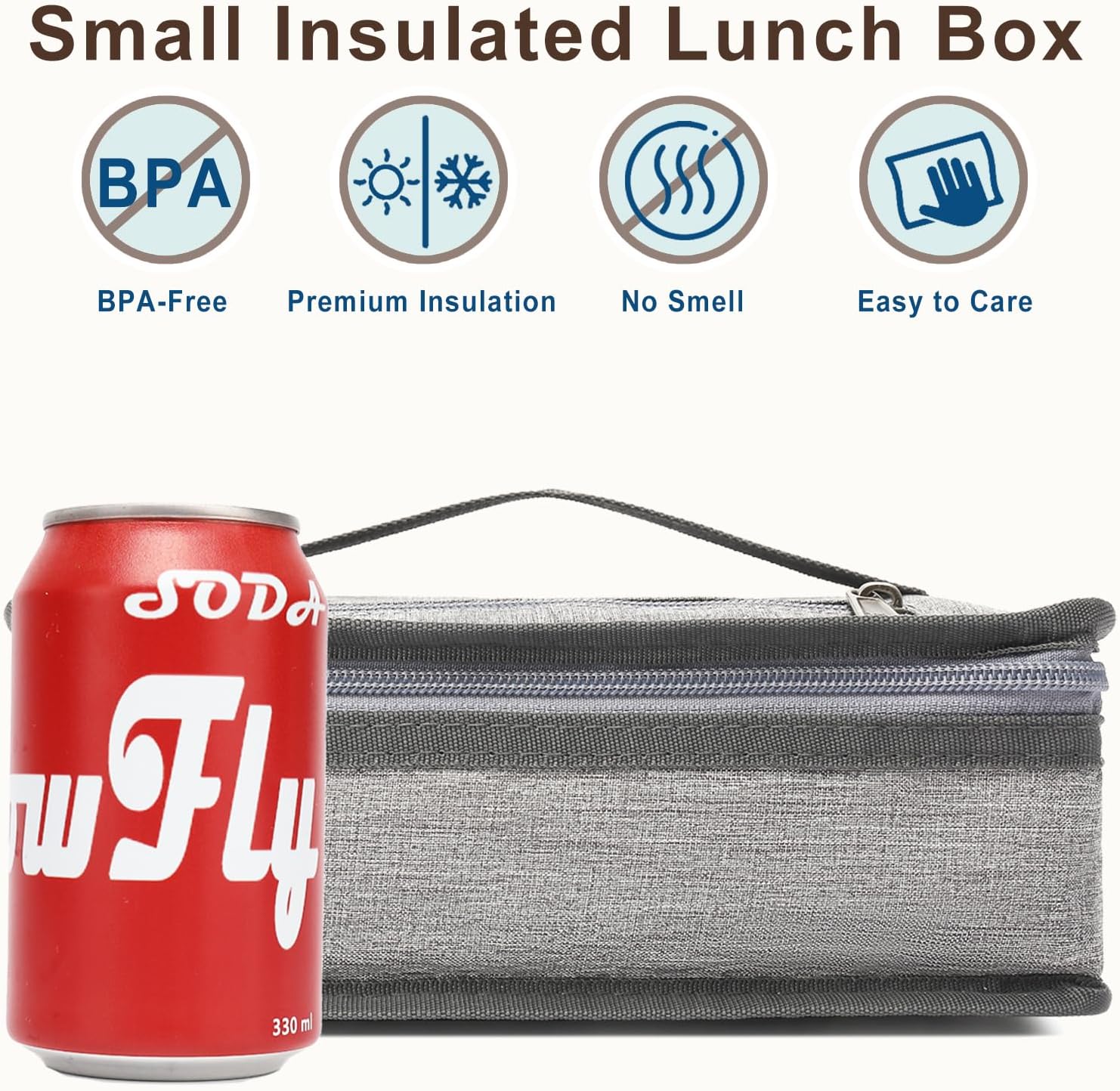 FlowFly Small Insulated Lunch box Portable Soft Bag Mini Cooler Thermal Meal Tote Kit with Handle for Work & School, Heather Grey