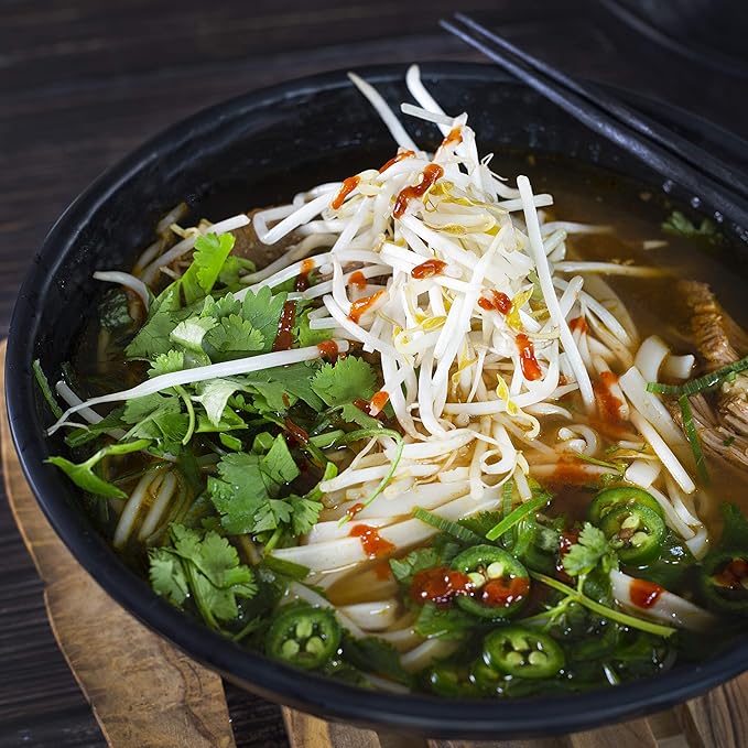 - ALL NOODLES, DONBURI BOWLS WELCOME - Japanese Ramen, Udon, Soba, Vietnamese Pho, Korean Spicy Noodles, Asian Rice Bowls...the list goes on and on. Make your own dish and eat it out of this beautiful matte black pho bowl set.