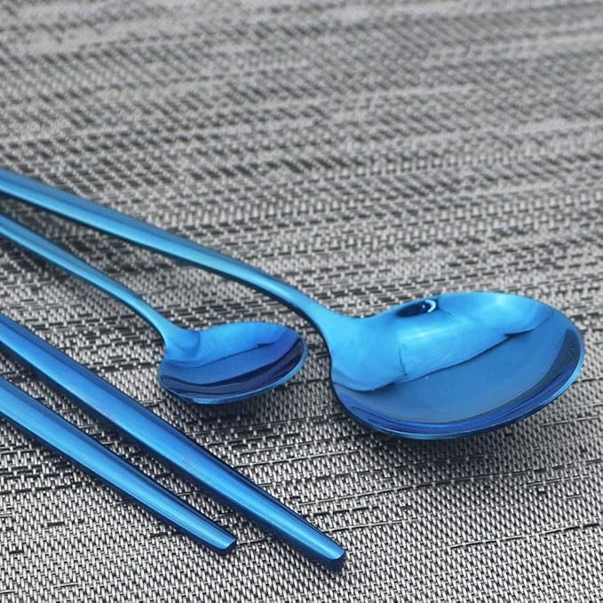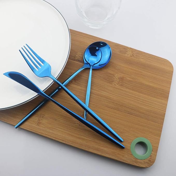 JASHII 24 Pieces Cutlery Flatware Set 304 Stainless Steel Home Kitchen Set, Mirror Polished, Knife/Fork/Spoon, Modern Elegant Tableware Set for Party, Christmas, Dinner (Blue)