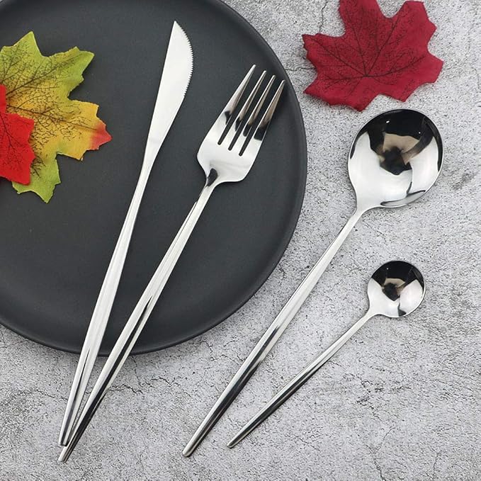 - 【Set Includes】6* Dinner Knife, 6* Dinner Spoon, 6* Dinner Fork, 6* Teaspoon. Service for 6, totally 24 pieces.