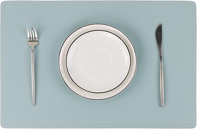 Faux Leather Placemats, PU Table Mats, Set of 4, Waterproof, Stain Resistant, Heat Resistant, Non-Slip Easy to Clean for Kitchen Dining Table,Conference Table C Teal Blue