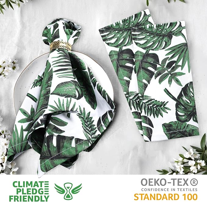 Urban Villa Cloth Napkins Tropical Print 100% Cotton Absorbent Dinner Napkins (Set of 12) Oversized 20x20 Inches Soft Durable Reusable Washable Ideal for Everyday Use Wedding Parties Premium Quality