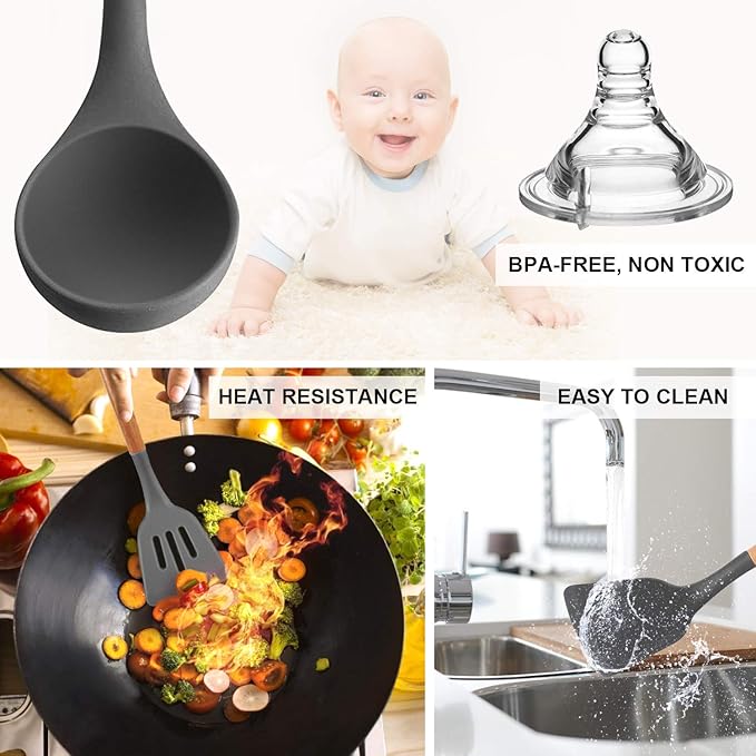 - Food Grade Material - Our cooking utensils are made from the highest quality materials. Food grade silicone is safe to use for any type of food - No breaking or bending. No melting. There's no head to pop off these spatulas which means healthier cooking and less clean up required. As such, they are longer-lasting than other kitchen utensils.