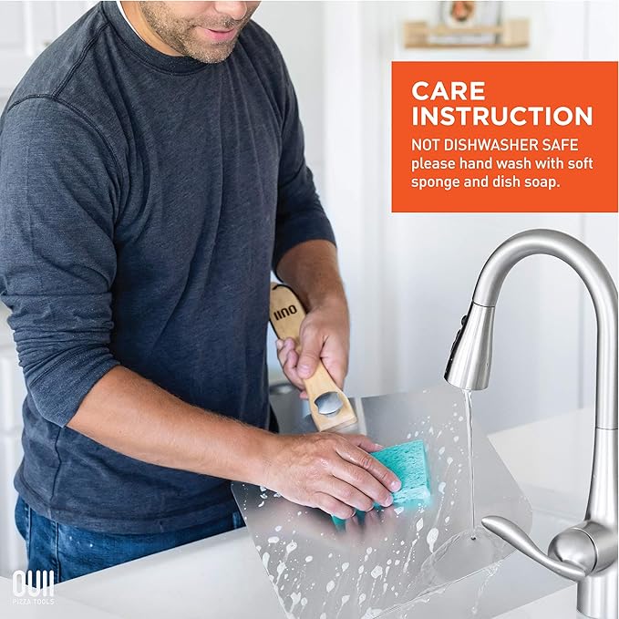 - ⭐ Easy To Clean: Hand wash only, but still a breeze to care for. When it’s time to tidy, simply wash the pizza slider with a soft sponge to prevent scratching. And because the plate is Rust-Proof Aluminum and not wood, it’s light, resistant to humidity, won’t chip, warp or splinter.