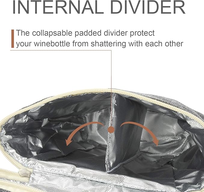 - 【Protection & thermal insulated】features maxcold insulation to keep your wines cool. super-thick insulation padded lining keeps interior cooler, longer, and protects bottles. whether you are headed to the beach, the park or out for the day tailgating, this wine tote is the perfect way to transport and cool your wine.