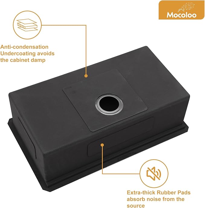 - LONG LASTING MATERIAL: Mocoloo 32 inch undermount kitchen sink is made of premium T304 stainless steel 16G construction for better performance in avoiding rusts and dents. Commercial brushed finish is designed to prevent scratches