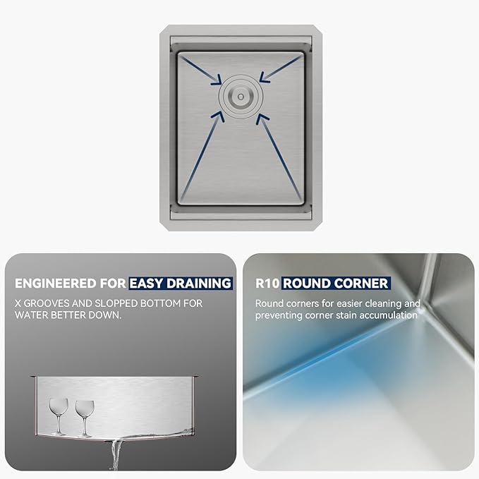 - Superior Strength and Durability: Crafted from 16-gauge stainless steel, our sink offers exceptional strength and long-lasting performance. Its commercial-grade brushed surface is more functional, resisting and hiding scratches better than a typical satin finish, making it easy to clean and maintain.
