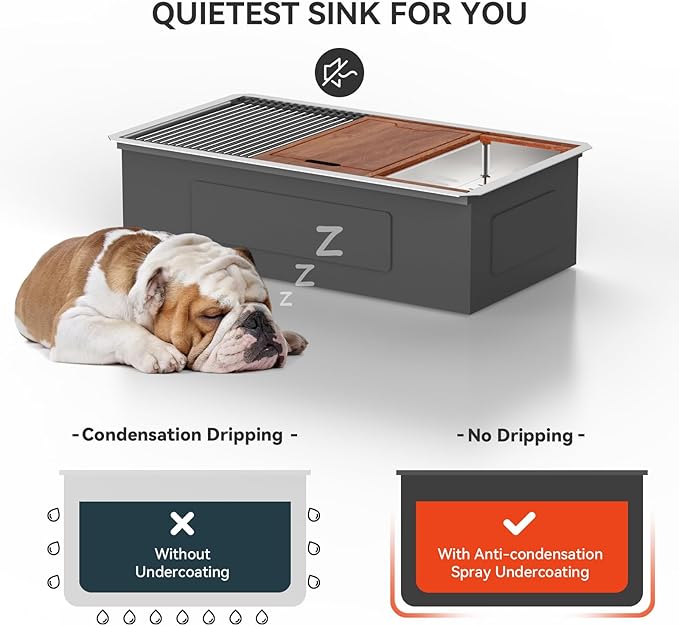 - All In One Workstation Kitchen Sinks : Our package includes : 1x 32" stainless steel undermount kitchen Sink, 1xColander, 1xCutting Board, 1xDish Drying Rack, 1xRinse Grid, 1xBasket Strainer Drain Assembly, 1xMounting Brackets and Coutout Template are all included in the package. This stainless steel sink has ledges on the front and back, you can slide the accessories across the sink to streamline meal prep and cleanup without losing space.