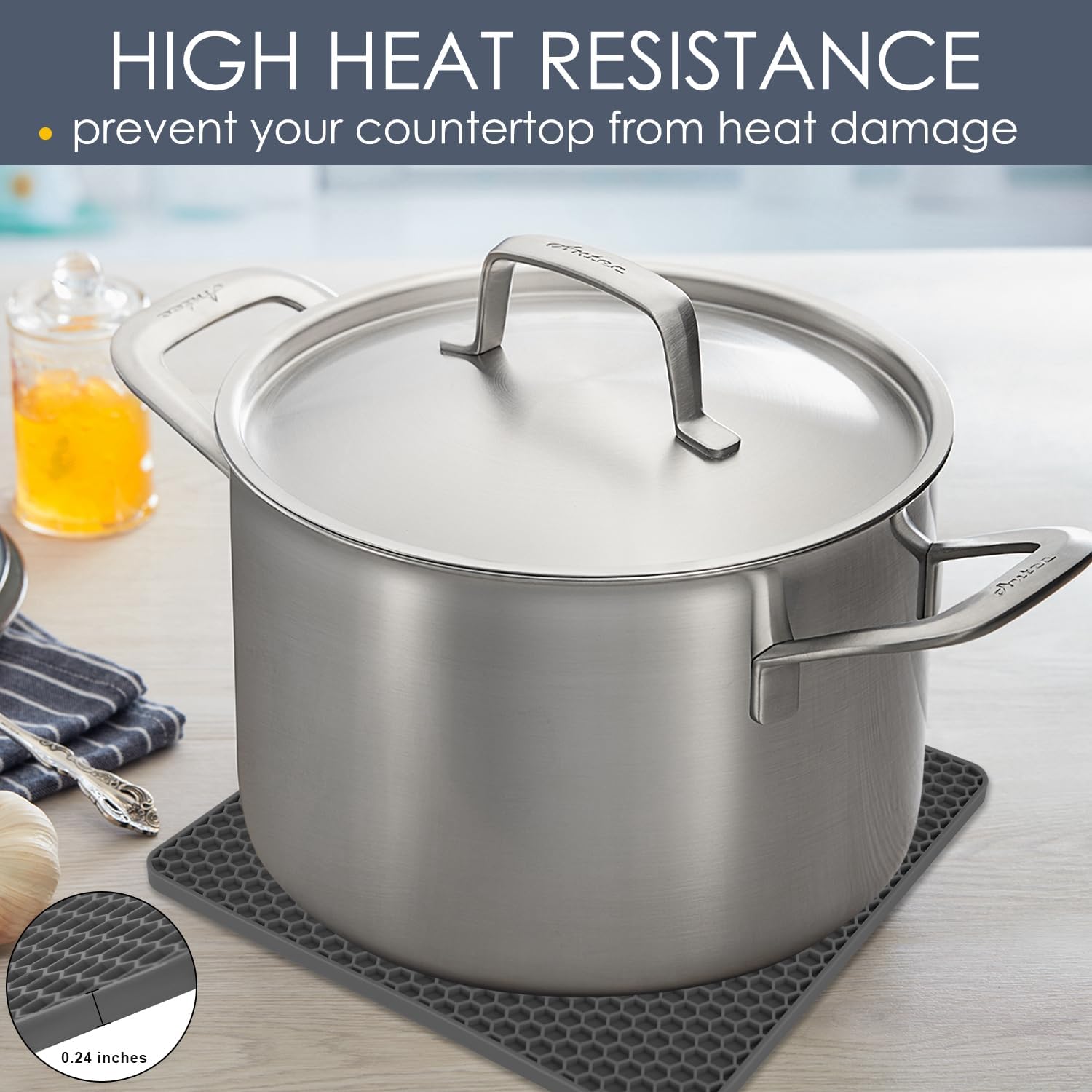 - đăMULTI FUNCTIONă-The silicone mat not only can be heat resistant counter mats, but also can be kitchen potholders for jar opener, trivets for hot dishes, hot pads for pots, non slip coasters, bowls mat, teapot mat, hot pot holder, hot mitts, spoon rest, dish drying mat or anywhere you need extra grip or extreme heat or cold protection.