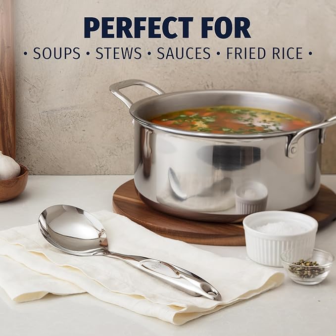 - WIDE SPOON BOWL: Its dimensions of 11.5 x 3 inches and thickness of 3mm is strong and wide enough to hold more food in one scoop. Perfect for the holidays, birthdays, outdoor activities, dinner parties, and more.