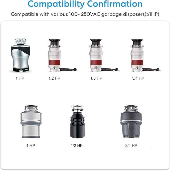 - Easy and Safe: Just plug and use. It is applicable to household appliances such as floor lamps, festival lights, fans, garbage disposals, etc.It is especially suitable for controlling the on and off of the garbage disposal. No drilling holes or running wires or damaging walls, you can turn on/off the disposal with one single button press, select 5s or 10s power timer, it will automatically power off after running, total safe to leave it work alone