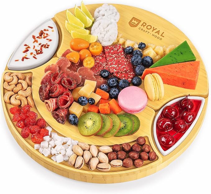 - ๐ท๐น๐ฌ๐ด๐ฐ๐ผ๐ด ๐ธ๐ผ๐จ๐ณ๐ฐ๐ป๐ ๐ช๐น๐จ๐ญ๐ป๐บ๐ด๐จ๐ต๐บ๐ฏ๐ฐ๐ท ๐ช๐ฏ๐ฌ๐ฌ๐บ๐ฌ ๐ท๐ณ๐จ๐ป๐ป๐ฌ๐น: Made of all-natural, organic bamboo material, this round charcuterie board is just the kit youโve been looking for. Its compact design makes it most convenient for travel use. Simply expand or collapse our cheese board with handle sides, to meet your partyโs needs. Made with high-class ingenuity, its accompanying side ceramic bowls and knives make it an optimal cheese platter!